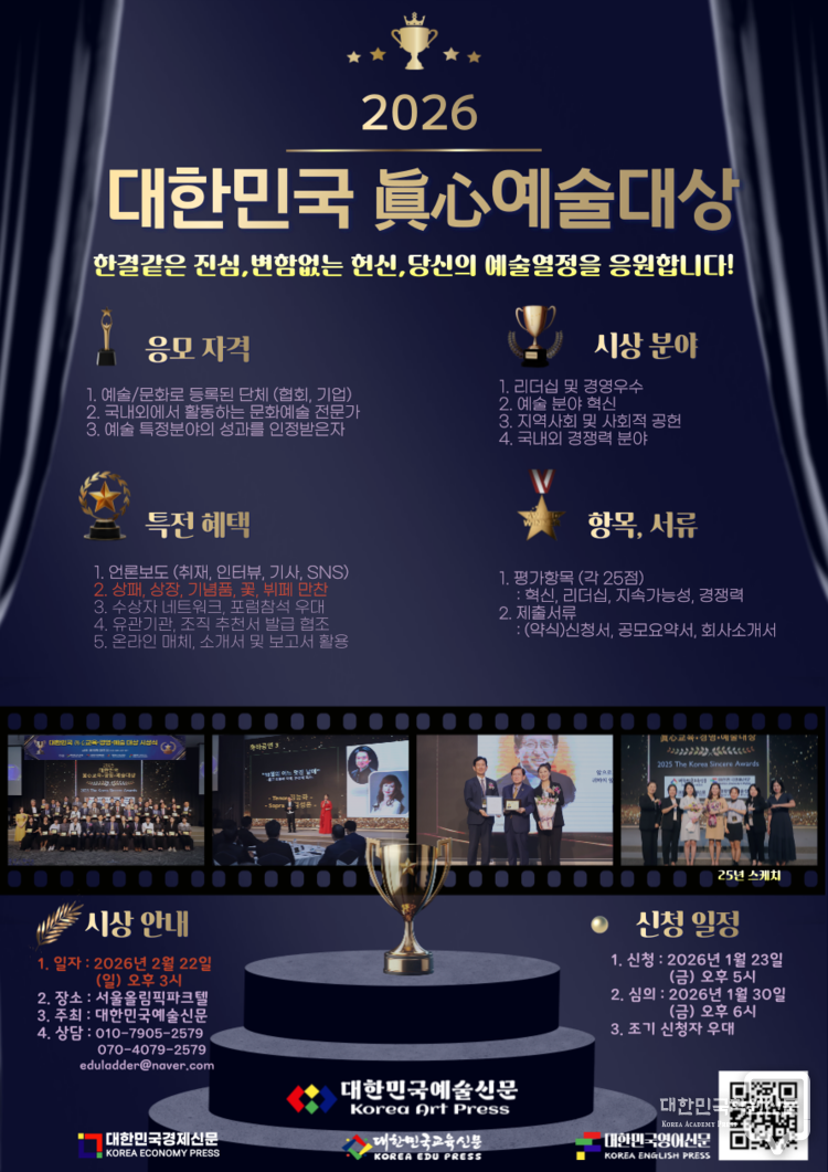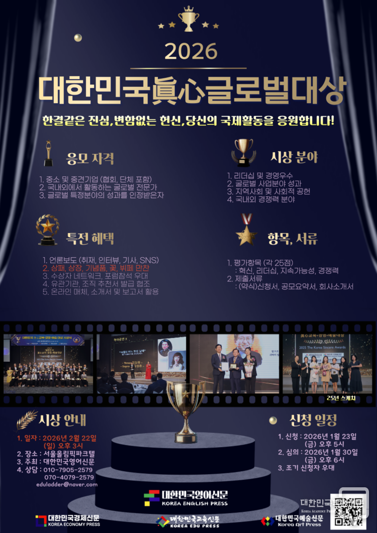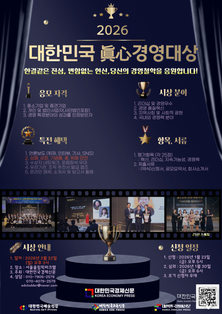 대한민국교육신문은 ‘진정성 있는 교육’을 실천해온 기관과 개인을 격려하기 위해 2026 대한민국 眞心교육대상 수상자를 공모한다.
